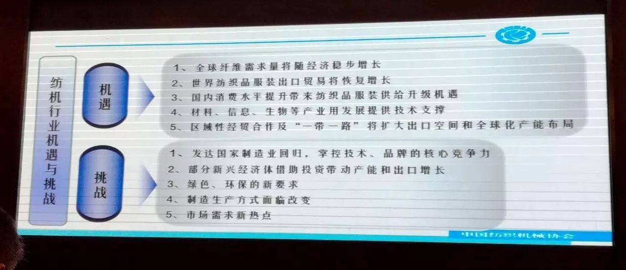 隨著國(guó)內(nèi)紡織業(yè)停止規(guī)模擴(kuò)張,國(guó)際大市場(chǎng)越來(lái)越受到紡機(jī)企業(yè)關(guān)注。中國(guó)紡織機(jī)械協(xié)會(huì)副秘書(shū)長(zhǎng)趙曉剛就關(guān)注國(guó)際市場(chǎng)的重要性進(jìn)行了分析。他提出,由于國(guó)內(nèi)產(chǎn)業(yè)規(guī)模增量的減少,紡機(jī)產(chǎn)能釋放的需要和產(chǎn)業(yè)轉(zhuǎn)移,國(guó)內(nèi)市場(chǎng)的變化以及國(guó)際市場(chǎng)一些紡織生產(chǎn)國(guó)完善自身產(chǎn)業(yè)鏈的需求都決定了國(guó)際市場(chǎng)的重要性,同時(shí)這也是國(guó)內(nèi)紡機(jī)企業(yè)自身發(fā)展壯大的需要。他還就2017年雅加達(dá)國(guó)際紡織及服裝機(jī)械展覽會(huì)、2017年孟加拉國(guó)際紡織及服裝機(jī)械展覽會(huì)、印度國(guó)際紡織機(jī)械展覽會(huì)等海外紡機(jī)展會(huì)情況進(jìn)行了分析。他表示,不少企業(yè)通過(guò)參加展會(huì),對(duì)開(kāi)拓當(dāng)?shù)厥袌?chǎng)更有信心。他還提醒紡機(jī)企業(yè),越南、巴基斯坦、烏茲別克斯坦、伊朗、土耳其等市場(chǎng)也值得重點(diǎn)關(guān)注。希望紡機(jī)企業(yè)在開(kāi)拓國(guó)際市場(chǎng)的基礎(chǔ)上,盡早考慮全球戰(zhàn)略布局。