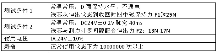 在滿足以下測試條件,電磁鐵的保持力和推力如下: